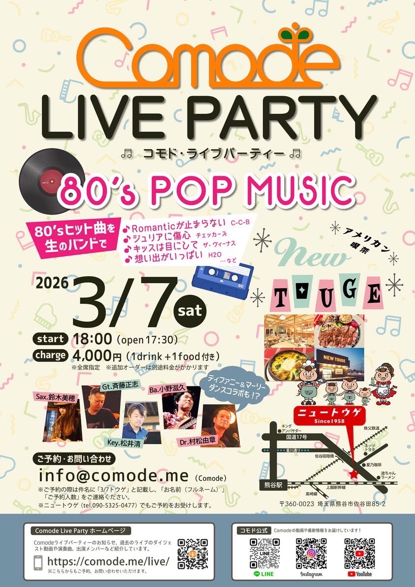 3月7日(土)はComodoさん主催のライブパーティです!!